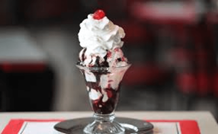 He picked up his sundae and without a word, walked over and placed it in front of the woman.