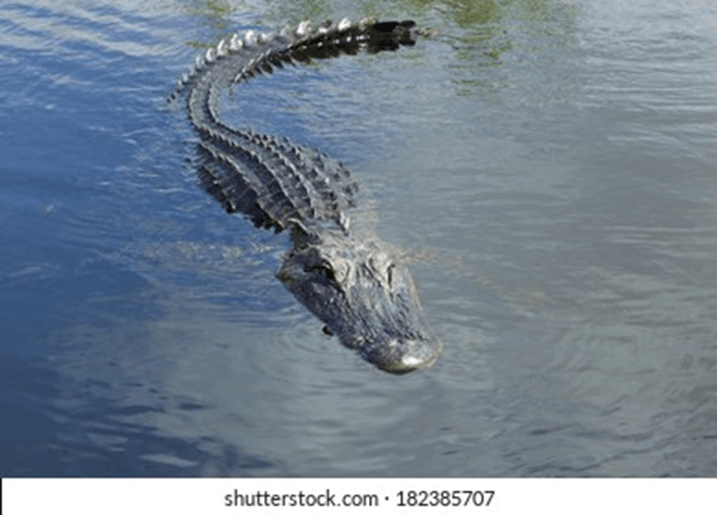 He flew into the water, swam out into the lake and then started back, not realizing that as he swam, an alligator was swimming toward the shore also.