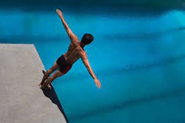 The young man climbed up to the highest diving board and as he turned his back to the pool on the edge of the board and extended his arms out, he saw his shadow on the wall.