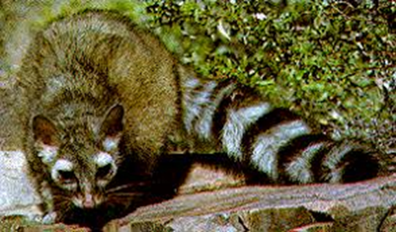 They are tan and grey like a fox, but they have this really long black and white ringed tail. They can be very aggressive, especially when surprised and disturbed.
