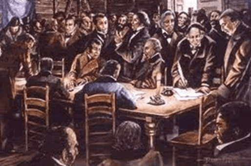 | “UNANIMOUS DECLARATION OF INDEPENDENCE by the delegates of the People of Texas in General Convention at the Town of Washington, on the Second Day of March, 1836. When a government has ceased to protect the lives, liberty, and property of the people, from whom its legitimate powers are derived, and for the advancement of whose happiness it was instituted; and so far from being a guarantee for their inestimable and inalienable rights, becomes an instrument in the hands of evil rulers for their oppression… …insuch a crisis … the inherent and inalienable right of the people to appeal to first principles, and take their political affairs into their own hands in extreme cases, enjoins it as a right towards themselves and a sacred obligation to their posterity to abolish such government, and create another in its stead, calculated to rescue them from impending dangers, and to secure their welfare and happiness …” |