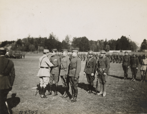 MacArthur receiving the French Croix de Guerre medal from General Bazelaire