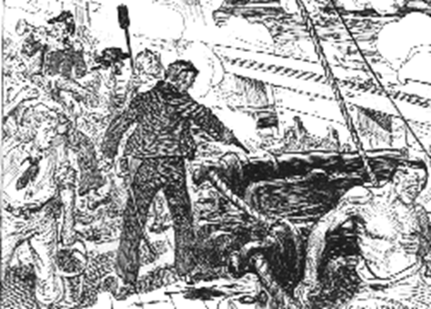 They courageously boarted their life boats, and rowed a half mile through heavy gunfire to the USS Niagara from which they could fight again.