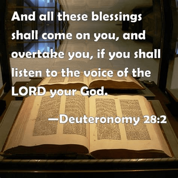 Deuteronomy 28 states: “And it shall come to pass, if thou shalt hearken diligently unto the voice of the Lord thy God, to observe and to do all his commandments. All these blessings shall come on thee, and overtake thee.”